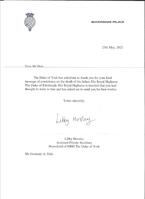 This was greatly appreciated by Their Royal Highnesses who send you their best wishes.